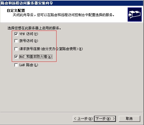 第四步,勾選“VPN訪問(wèn)”和“NAT和基本防火墻”。