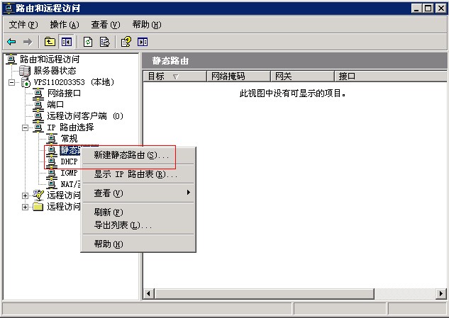 第九步,右鍵點(diǎn)擊“靜態(tài)路由”,再點(diǎn)擊“新建靜態(tài)路由”。