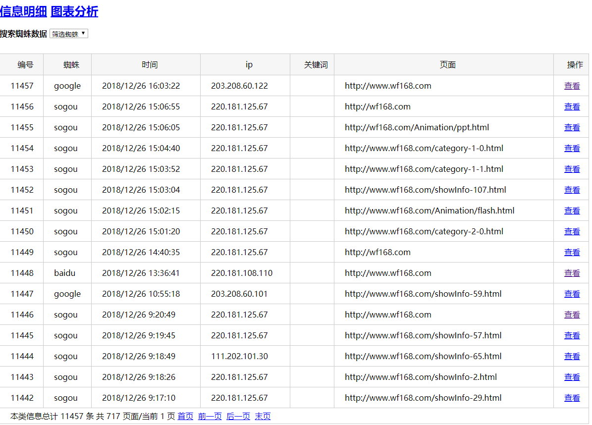 在網(wǎng)站過(guò)程中如何才能知道搜索蜘蛛來(lái)訪時(shí)間,訪問(wèn)的什么頁(yè)面呢。不少推薦查看IIS日志,IIS日志的確可以查看搜索蜘蛛的信息,但是IIS日志里面包含了太多的網(wǎng)站信息,并且IIS日志查閱不方便。