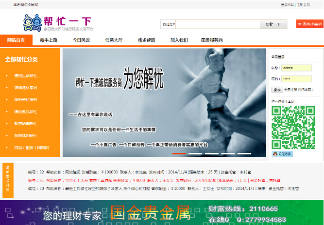 由濰坊全球通服務(wù)咨詢有限公司籌備策劃的廣告營銷服務(wù)平臺(tái) 幫忙一下網(wǎng)通過客戶驗(yàn)收上線。