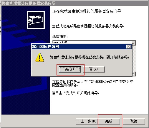 第五步, 點(diǎn)擊“完成”。系統(tǒng)提示“要開始服務(wù)嗎?”,選擇“是”。