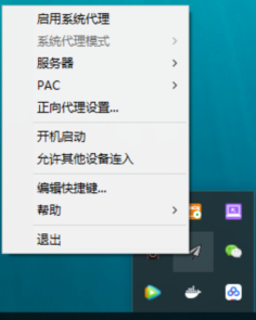配置完成后點擊保存,并選擇右下角圖標(biāo),右鍵啟用系統(tǒng)代理。