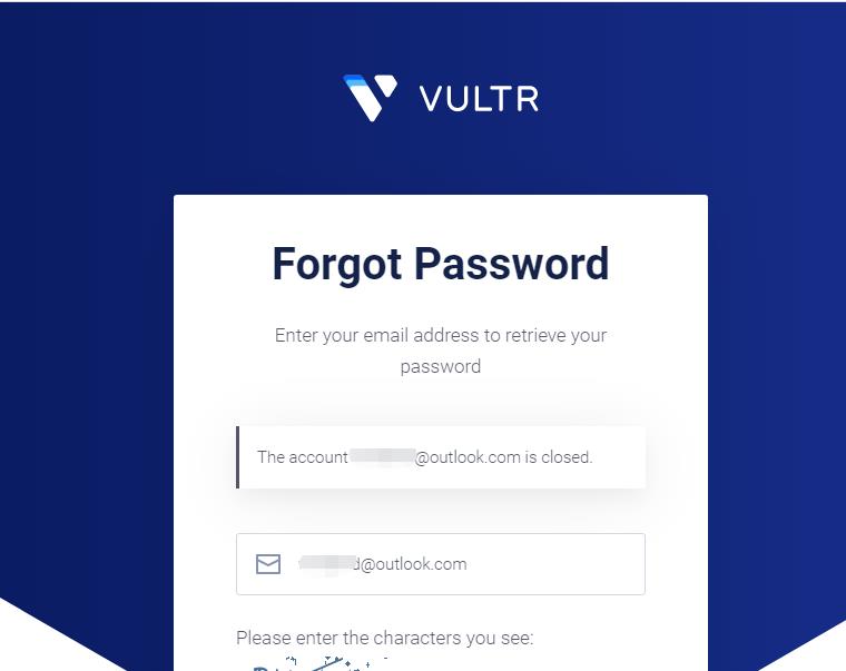 今天登陸vultr使用之前的賬號(hào)登陸,一直提示賬號(hào)和密碼錯(cuò)誤,賬號(hào)和密碼確認(rèn)是沒(méi)有錯(cuò)誤的。